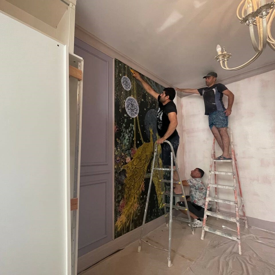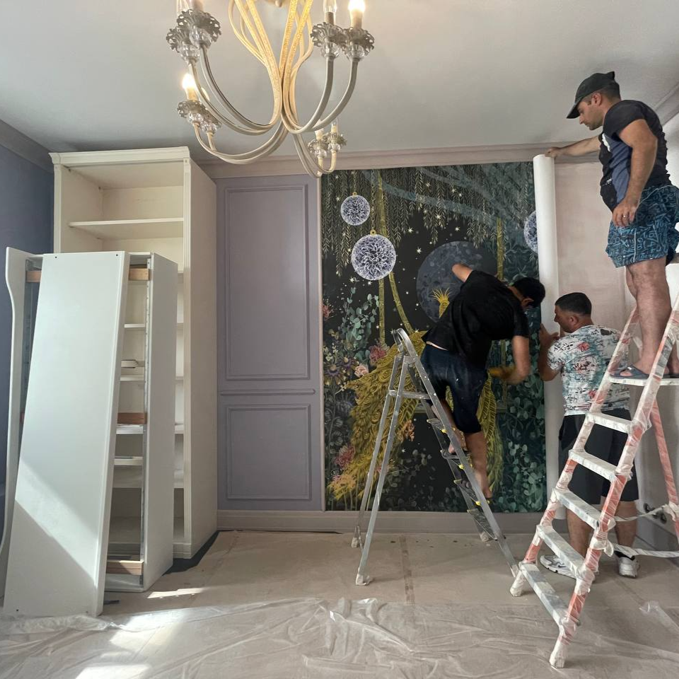 Почему? Ожидание перемен, необходимость изменить многое для себя и детей, желание встретить того самого мужчину.... Я была убеждена, что ей нужно создать атмосферу рассвета, пробуждения к прекрасному, гармонию мягкости и силы, теплоты и прохлады, женского и мужского, а если к этому прибавить остающуюся мебель с французским флером, молдинги на стенах, любовь к Парижу, летние гортензии..., то картинка складывалась. А с ней и цветовая гамма и мотивы на обоях..